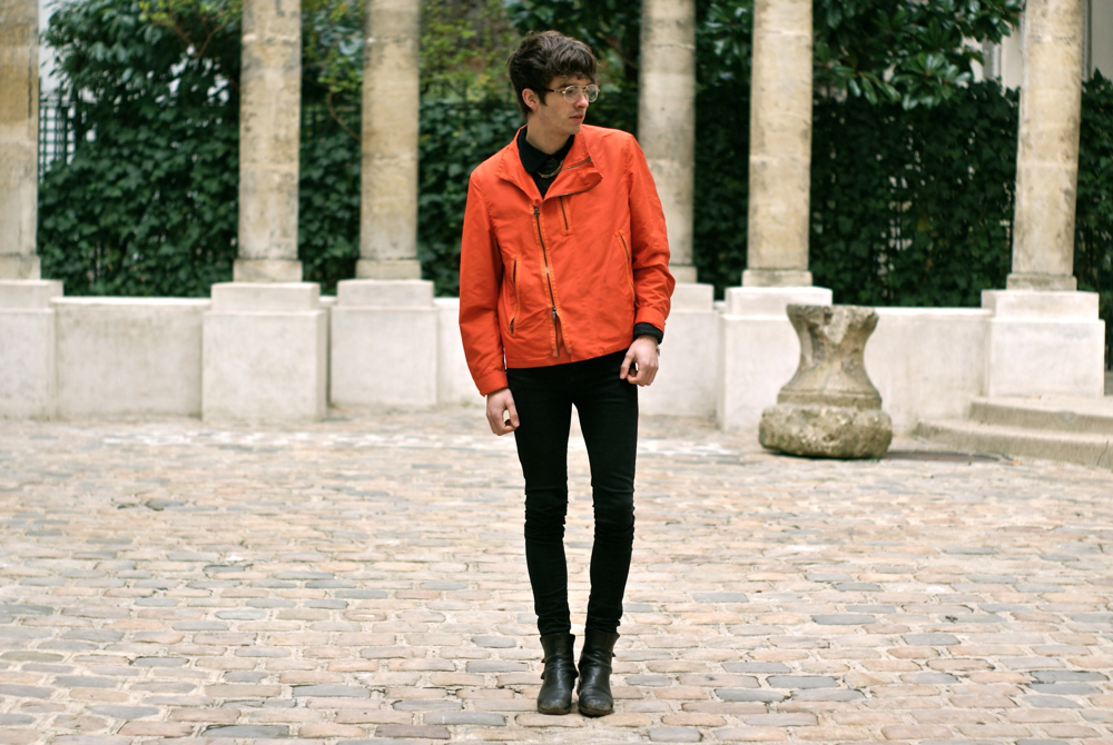 | Jacket : Jil Sander / Shirt : Comme des Garçons / Sweater : Kenzo / Jeans : Fashops Necklace : Maison Martin Margiela / Glasses : Optic 2000 / Bracelet, Vest & Boots : vintage |