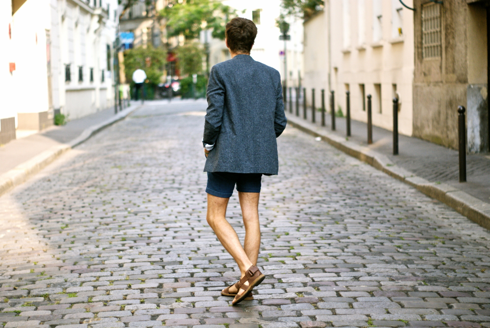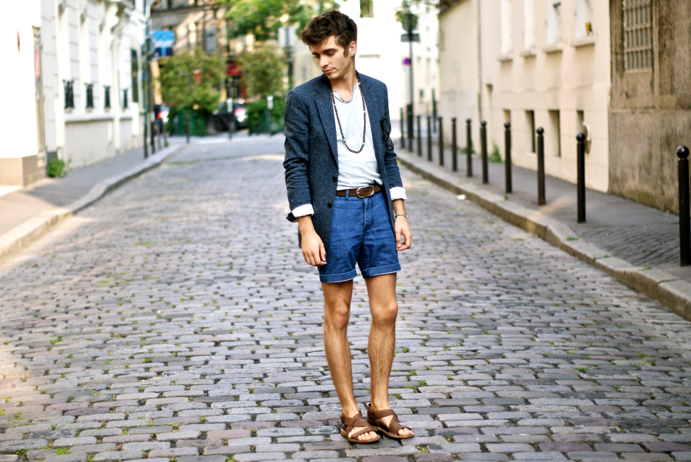 | Blazer : Sandro / Tee : Zadig & Voltaire / Short : H&M / Shoes : Maison Martin Margiela Belt : Replay / Necklace : Inouï / Bracelet : Dinh Van / Glasses : Givenchy |