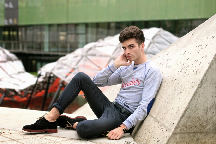 | Cavalier Bleu Sweatshirt • Asos Jeans • Faimount Shoes • Hermès Bracelet • Ray-Ban Glasses |