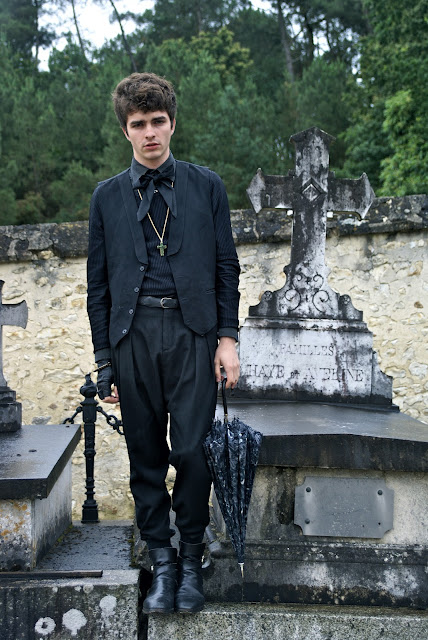 Pants : Givenchy / Shirt : tout Simplement / Lavallière : agnès b. Vest, Top, Glove, Belt, Boots, Jewelries & Umbrella : vintage |