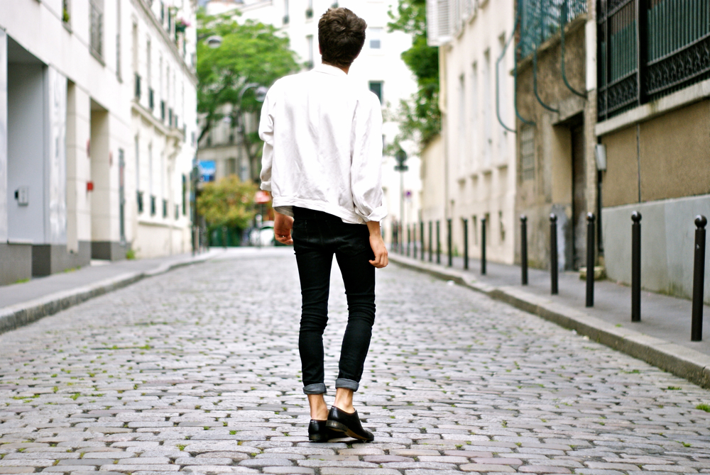 I did not see the time fly as today my blog is one year old! Apart from that "birthday", I wear my new Maison Martin Margiela derbies that I have shown to you last week. But this time without laces, as they are equipped with a rubber band. You can also see my cross-shaped double-ring.
