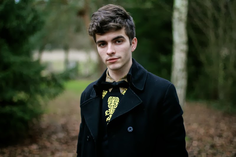 | Boss Orange Peacoat • MaadSha Sweatshirt • Cheap Monday Jeans Vintage Shirt & Boots • Jack & Jones Bow-Tie |